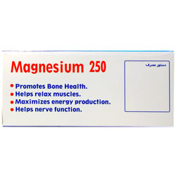 - هر قرص حاوی 250 میلی گرم منیزیم (به صورات اکساید)