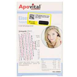 - قرص آیزن آپوویتال حاوی 20 میلیگرم آهن در کنار ویتامین C، اسید فولیک، ویتامین B6 و ویتامین B12