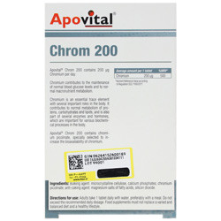 قرص کروم 200 آپوویتال حاوی کرومیوم پیکولینات بوده که در مقایسه با سایر املاح کرومیوم از میزان جذب بالاتری برخوردار است.