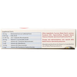 - حاوی کربونیل آیرون، فولیک اسید، زینک، ویتامین های گروه ب و ویتامین ث