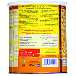 انواع اصلی شیرخشک: شیرخشک تولید شده از شیر گاو: بیشتر انواع شیرخشک موجود در بازار از شیرگاو تهیه شدهاند و اصلیترین مواد مغذی مورد نیاز کودک را دارند. تولیدکنندگان ضمن خشک کردن شیر، پروتئین این شیرها را تغییر میدهند بهطوری که دستگاه گوارش کودک بتواند آنها را به راحتی هضم کند. البته برخی کودکان به پروتئینهای شیرگاو حساسیت نشان میدهند بنابراین به نوع خاصی از شیرخشک مخصوص کودکان احتیاج دارند. شیر خشک تهیه شده از سویا: این نوع شیرخشک برای شیرخوارانی مناسب است که به پروتئینهای حیوانی حساسیت نشان میدهند. البته اگر شیرخوار به شیرگاو یا لاکتوز هم حساسیت دارد میتواند از این نوع شیر تغذیه شود. یادآوری میشود که لاکتوز یک نوع قند است که در شیرگاو وجود دارد. با وجود این گاهی میبینیم بعضی بچههایی که به شیرگاو حساسیت دارند به شیر سویا هم آلرژی دارند. شیرخشک با پروتئینهای تجزیه شده: این نوع شیرخشک حاوی پروتئینهای تجزیه شده است که بسته به نوع آن ممکن است کل یا بخشی از پروتئین شیر تجزیه شده باشد. شیرخوارانی که به شیر گاو و شیر سویا واکنش نشان میدهند، بهتر است از این نوع شیر تغذیه شوند. این نوع شیر خشک همچنین برای کودکانی که کاملا به انواع پروتئین حساسیت دارند هم مناسب است. شیرخشک خاص: برخی انواع شیرخشک هم برای نوزاد نارس یا شیرخوارانی که نیازهای تغذیهای بهخصوصی دارند، تولید میشوند. تذکر: بعد از هربار مصرف باقی مانده شیر داخل شیشه را دور بریزید. درب قوطی را بعد از هربار مصرف محکم ببندید. محتویات قوطی باز شده حداکثر تا 3 هفته قابل مصرف می باشد.
