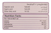 احتیاط مصرف: در بیماران مبتلا به دیابت کنترل نشده و بیماران با مشکلات کبدی و سیروز تحت نظر پزشک یا متخصص تغذیه مصرف شود. به عنوان تنها منبع تغذیه ای نمی تواند مورد استفاده قرار گیرد. در افراد زیر 18 سال طبق دستور پزشک مصرف شود. این محصول در برخی موارد می تواند منجر به ایجاد عوارض گوارشی از جمله اسهال، تهوع، نفخ و غیره شود. در صورت مصرف بیش از حد نیز می تواند منجر به افزایش وزن شود. برای کاهش عوارض گوارشی بهتر است این فرآورده با غذا مصرف شود. عوارض جانبی: عوارض جانبی گوارشی شامل اسهال، حالت تهوع، ناراحتی شکمی و کمبود اسید چرب ضروری مشاهده می شود. هشدارها و نکات قابل توصیه: بیش از مقدار توصیه شده از مکمل های رژیم غذایی استفاده نکنید. برای مصرف وریدی مناسب نمی باشد. برای استفاده بعنوان تنها منبع تغذیه مناسب نمی باشد. روغن MTC ممکن است در مواردی باعث ناراحتی دستگاه گوارش شود. برای کاهش این اثرات، استفاده از این فرآورده همراه با وعده غذایی توصیه می شود. در دوران بارداری و شیردهی با مشورت پزشک مصرف شود. در صورت مصرف دارو و یا داشتن وضعیت پزشکی خاص، حتما قبل از مصرف با پزشک خود مشورت کنید. دور از دسترس کودکان نگهداری شود.
