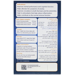 - حاوی پودر جینسینگ کره ای، پودر برگ جینکو بیلوبا و عصاره برگ جینکو بیلوبا