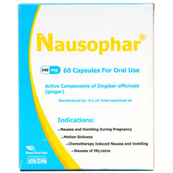 - کپسول نازوفار موثر در رفع تهوع و استفراغ ناشی از بارداری، شیمی درمانی، میگرن، بیماری حرکت، جراحی و داروهای بیهوشی