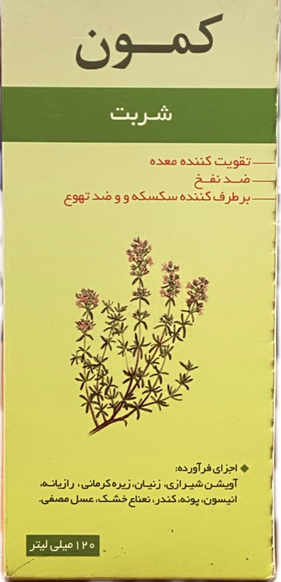 - شربت کمونی، خلط آور گیاهی با اثربخشی تایید شده به ویژه به دلیل حضور مقادیر بالای تیمول در آویشن شیرازی
