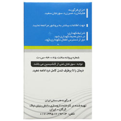 - اجزای فرآورده: هلیله زرد، صبر زرد، سورنجان سفید (سورنجان غنی از کلشیسین می باشد.) دارای ISO 9001, 10002, 14001, 18001