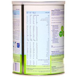 حاوی پروبیوتیک، پره بیوتیک حاوی ویتامین های A,C,D برای کمک به تقویت سیستم ایمنی حاوی امگا 3 (ALA) برای کمک به تکامل مغز و بافت های عصبی حاوی آهن برای تقویت قوای شناختی فاقد نشاسته مناسب برای تکمیل تغذیه کمکی