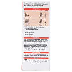 - با طعم گیلاس جهت افزایش گلبول های قرمز حاوی ویتامین ها و مواد معدنی ، لایزین بدون لاکتوز بدون گلوتن