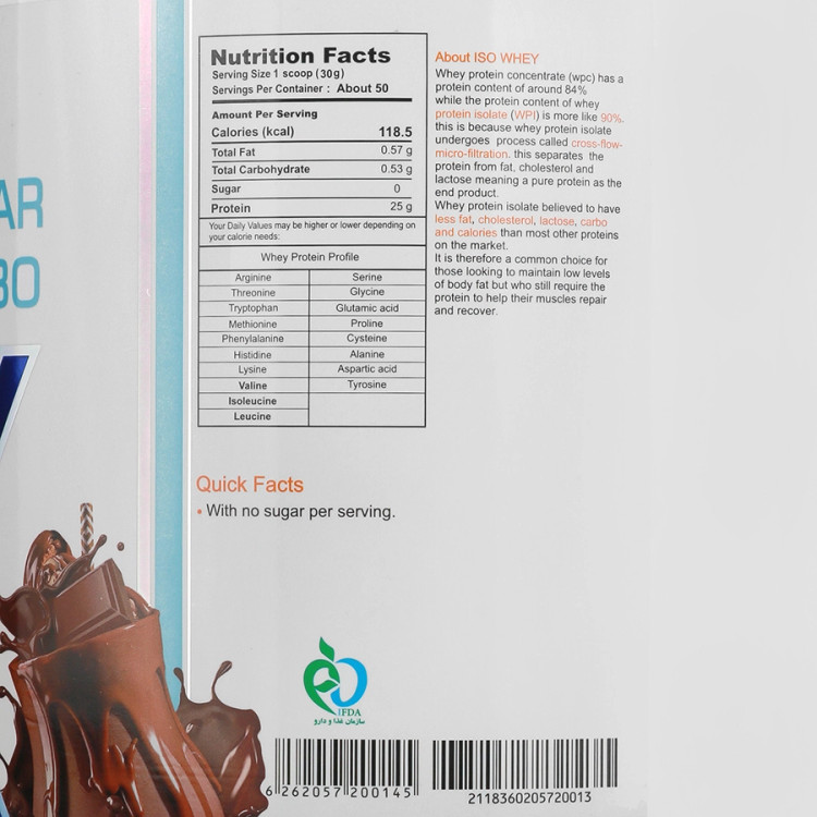 - وی ایزوله دوبیس دارای حداقل میزان کربوهیدرات و چربی