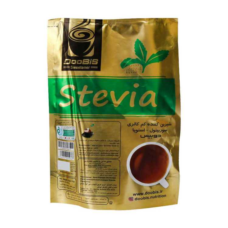 ترکیبات : سوربیتول ، استویا جایگزین بسیار خوبی برای شکر مناسب برای ورزشکاران و افرادی که در رژیم لاغری قرار دارند