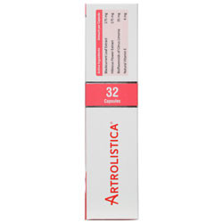 آرترولیستیکا یک فرآورده طبیعی به شکل دارویی کپسول است که به عنوان غضروف ساز کاربرد دارد. آرترولیستیکا حاوی ترکیبات آنتیاکسیدانی و ضدالتهابی، مانند عصاره برگ انگورفرنگی سیاه، چای ترش، بیوفلاونوئیدهای لیمو و ویتامین E است و به بهبود التهاب و درد مفاصل، تسهیل حرکت و ترمیم عضلات پس از ورزش کمک می کند. این مکمل در جعبه های مقوایی 32 عددی شامل 2 بلیستر 16 تایی تحت لیسانس فرانسه و توسط شرکت آرین سلامت سینا در ایران تولید می شود.