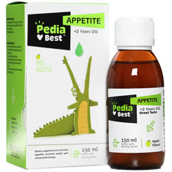 شربت پدیا بست اپتایت دارای عصارههای کاسنی و شنبلیله، رویالژلی، زینک، ویتامین C و ویتامینهای گروه B است.