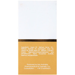 - حاوی روغن آرگان روغن شاهدانه روغن دانه انگور روغن مورینگا روغن گل مغربی حفظ رطوبت و آبرسانی به ساقه مو و کاهش خشکی پوست سر و رفع خارش ترمیم ساقه و اسکالپ موهای خشک و آسیب دیده فاقد الکل سولفات و هرگونه پرزرواتیو مضر فرموله شده مطابق با مقررات و استانداردهای سازمان غذا و دارو و IFDA