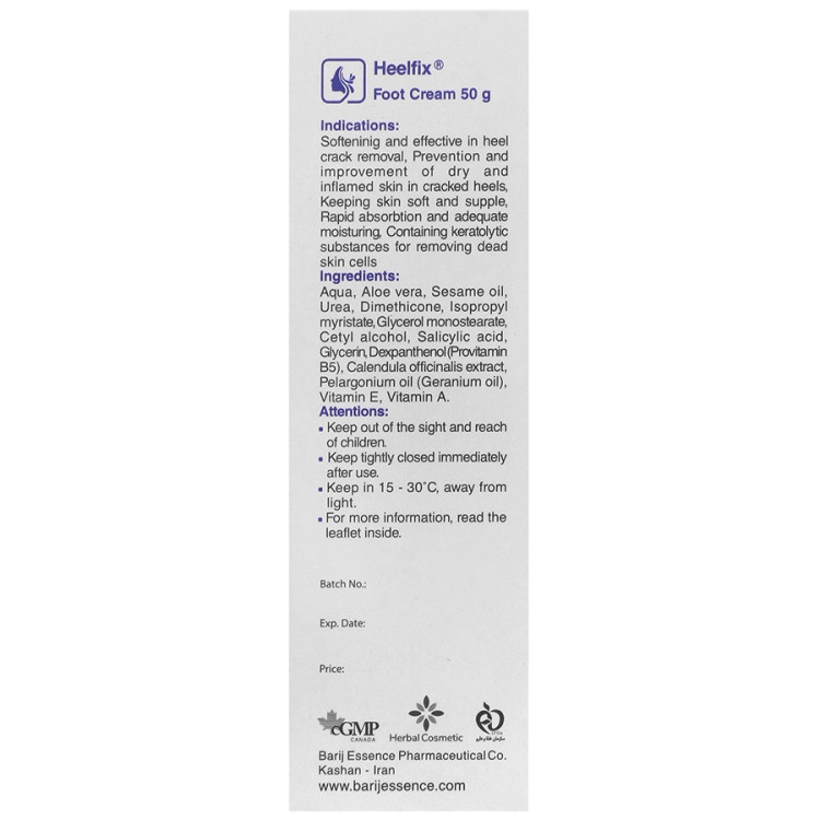 عوامل ایجاد ترک پااین عارضه در فصول سرد سال که هوا خشک تر می شود به وجود می آید و یا تشدید می شود. کرم ترک پا باریج اسانس با فرمولی ویژه و داشتن مواد موثره گیاهانی چون همیشه بهار ، ژرانیوم و آلوئه ورا واجد ویژگی های لازم برای پیشگیری و درمان خشکی و التهاب در ترک های پوستی بویژه ترک پاشنه پا می باشد.