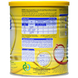 دستور شیردهی: در سن 0 تا 2 هفتگی و با وزن تقریبی 3.5 کیلوگرم: روزانه 2 پیمانه از پودر را در 60 میلی لیتر آب جوشیده ی ولرم مخلوط کرده و 9 بار در روز به کودک بدهید. در سن 2 هفتگی تا 3 ماهگی با وزن تقریبی 4.5 تا 5.5 کیلوگرم: 4 پیمانه از پودر را در 120 میلی لیتر آب جوشیده ی ولرم مخلوط کرده و 6 بار در روز به کودک بدهید. در سن 3 تا 6 ماهگی با وزن تقریبی 6.5 کیلوگرم: 6 پیمانه از پودر را در 180 میلی لیتر آب جوشیده ی ولرم مخلوط کرده و 5 بار در روز به کودک بدهید. یک پیمانه معادل 4.3 گرم است. 1- قبل از تهیه شیر برای شیرخوار، دست های خود را بشویید. 2- شیشه شیر، سرپستانک و درپوش را کاملا و با دقت بشویید بطوریکه اثری از شیر باقی نماند. 3- شیشه شیر، سرپستانک و درپوش را به مدت 5 دقیقه بجوشانید و تا زمان مصرف روی آن ها را بپوشانید. 4- آب آشامیدنی را به مدت 5 دقیقه بجوشانید و بگذارید در کمتر از 30 دقیقه کمی خنک شود. 5- مقدار لازم از آب جوشانده خنک شده را طبق مقدارهای تعیین شده داخل شیشه شیر بریزید. 6- تنها از پیمانه داخل قوطی استفاده کنید و محتوای پودر داخل پیمانه را سرصاف کنید. 7- طبق دستور مقدار لازم از پودر مناسب با سن شیرخوار را با استفاده از پیمانه در داخل شیشه شیر بریزید 8- شیشه را تکان دهید تا شیر خشک کاملا حل شود. 9- پس از هر بار استفاده درب قوطی را ببندید و در جای خشک و خنک نگهداری کنید.