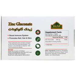 | زینک ( زینک گلوکونات ) | Zinc ( as Zinc Gluconate ) | 250 mg | 318 |