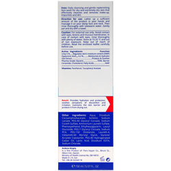 مواد موثره و کاربرد: اوره 5% : مرطوب کننده، برطرف کننده لایه فرسوده پوست اسید هیالورونیک 0.2% : آبرسان قوی پوست عصاره جو دوسر : محافظت کننده پوست گلیسیرین دارویی : مرطوب کننده پوست اسیدهای چرب، کلسترول، سرامید : عوامل مرطوب کننده طبیعی پوست ویتامین ها : پانتنول، توکوفریل استا مکانیزم اثر محصول: شستشو و پاک نمودن پوست از مواد آرایشی، آلودگی های سطحی و گرد و غبار تامین رطوبت مورد نیاز پوست با دارا بودن کمپلکس عوامل مرطوب طبیعی پوست شامل اوره، سدیم PCA و سدیم لاکتات التیام و تسکین تحریکات پوستی ناشی از خشکی و خارش با دارا بودن عصاره جودوسر محافظت از لایه هیدرولیپیدیک پوست با دارا بودن اسید هیالورونیک هیدرولیزه شده، اسیدهای چرب، کلسترول، سرامید بازسازی و حفظ تعادل چربی/ آب پوست با دارا بودن کمپلکس عوامل مرطوب کننده طبیعی پوست