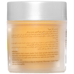 نرم کننده و مغذی پوست ترمیم و بازسازی پوست دست و نواحی آسیب دیده اطراف ناخن دارای اسیدهای ارگانیک جذب سریع و بدون اثر چربی بر روی پوست حاوی کراتین هیدرولیزه شده جهت رطوبت رسانی، تقویت ناخن و بازگرداندن یکپارچگی بافت آن حاوی شی باتر و زرد آلو قدرت نرم کنندگی، جوانسازی پوست دست و ضد التهاب