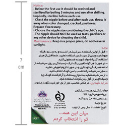 در صورت هر گونه تغییر رنگ، ترک، چسبندگی بر روی سر شیشه از ادامه مصرف آن خودداری و در صورت لزوم تعویض نمایید. سایز سر شیشه را متناسب با سن کودک انتخاب نمایید. از سر شیشه نباید به عنوان پستانک یا آرام کننده کودک و یا وسیله ای برای گول زدن کودک استفاده شود.