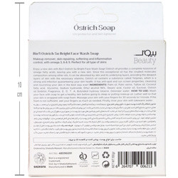 صابون شفاف پاک کننده پوست صورت، حاوی روغن شتر مرغ، ترمیم کننده، نرم کننده و کاهش دهنده لک و آکنه: وجود روغن شترمرغ در این محصول به معنای دستری به منبع کامل اسید های چرب امگا برای هدیه پوستی جدید به شما می باشد، این روغن استثنایی دارای ریزترین بافت در بین روغن ها بوده و کاملا توانایی جذب در پوست و لایه های زیرین آنرا ایجاد می نماید، که به معنای تامین ویتامین های مورد نیاز پوست در عمیق ترین سطوح آن می باشد که نتیجه ای جز مواجه شدن با تولد پوستی جدید نخواهد داشت، روغن شترمرغ دارای ماده ای بنام ترپینز می باشد که ضد عفونی کننده ای بسیار قوی بوده و سلامت پوست را تضمین خواهد نمود. این روغن خاصیت ضد لک و ضد آفتابی بالایی داشته و پاکسازی کامل پوست را در کنار تغذیه ای کامل فراهم می سازد.