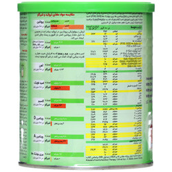 غنی شده با آهن دارای مواد مغذی نیمه ضروری دارای اسید سیالیک دارای پری بیوتیک ها دارای اسیدهای چرب DHA و AA و EPA فاقد گلوتن