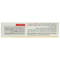هر ویال خوراکی تک دوز (10 میلی لیتر) حاوی 1000 میلی گرم اسکوربیک اسید (ویتامین C) غیر قابل تزریق با طعم پرتقال بدون قند