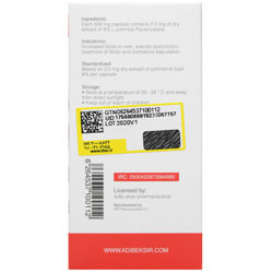 - هر کپسول حاوی 2.5 میلی گرم عصاره خشک پوست درخت یوهیمبین 8% (Pausinystalia yohimbel 8%) می باشد.