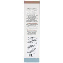 تابش بیش از حد نور خورشید و قرار گرفتن در معرض نور خورشید در مدت طولانی خیلی سریع باعث به وجود آمدن لک های تیره (کک و مک) و نیز بروز چروک می شود. در زمان استفاده از این کرم از قرار گرفتن در معرض نور خورشید به مدت طولانی اجتناب کنید. نوآوری این فرمول آمیزه ای از ترکیبات روشن کننده موثر برگرفته از عصاره گیاهان و ویتامین E به عنوان یک مرطوب کننده برای پیشگیری و کاهش لک های تیره می باشد. آربوتین به منظور کاهش اثرات زیانبار نور خورشید و به خصوص با توجه به اثرات رادیکال های آزاد با کاهش تولید ملانین از به وجود آمدن رنگدانه های تیره بر روی پوست پیشگیری می کند. حضور ویتامین C یکی دیگر از آنتی اکسیدان های قوی و عامل کاهش رنگدانه در پوست می باشد، همچنین به کاهش ظهور لک تیره و در نتیجه محدود کردن انتقال ملانین به سطح پوست جلوگیری می نماید.