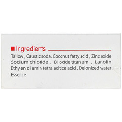 این صابون حاوی دو ماده مؤثره اکسید روی و اکسید تیتانیوم می باشد. علاوه بر این ماده، دی اکسید تیتانیوم نیز از مواد مؤثره دیگر این صابون است. این دو ماده هر دو از ضد آفتاب های مرسوم و معروف بوده که از دیرباز مورد استفاده قرار می گرفته اند. در واقع اثر گذاری این دو ماده با هم بر روی پوست به خصوص در نواحی دست و صورت به عنوان Opaque covering agent، با تأثیر گذاری بر سلول های خارجی پوست سبب لایه برداری ظریف سطح پوست همراه با ایجاد روشن کنندگی، پوشانندگی و ترمیم پذیری مطلوب در پوست می گردد. علاوه بر این ماده از اوره به عنوان مکملی مناسب برای این ترکیبات استفاده گردیده تا با تسریع هیدراسیون پوست سبب می شود تا پوستی نرم، روشن و مرطوب حاصل گردد. کاربرد این صابون به عنوان روشن کننده برای اولین بار در دنیا توسط شرکت شدا کیش وابسته به کمپانی میلاکو امریکا به بازار ارائه شده است. استفاده از این صابون در افراد با پوست حساس، تیره، آفتاب سوخته توصیه می گرد.