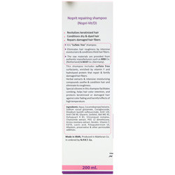 در این شامپو در کنار شوینده های بسیار ملایم از ویتامین F و پروتئین هیدرولیز شده برای ترمیم و تقویت ساقه موهای آسیب دیده استفاده شده است. مرطوب کننده های قوی و عصاره های گیاهی نیز موجب افزایش لطافت مو شده و به آن حالت می دهند. سیلیکون مخصوص موجود در شامپو نوپری ویت دی نیز لغزانندگی موها بر روی هم و شانه خوری آن ها را افزایش داده، موجب تثبیت رنگ مو و محافظت از آن در برابر حرارت می شود. این شامپو از موهای کراتینه و رنگ شده در برابر آسیب های فیزیکی و حرارت، به خوبی محافظت می نماید.