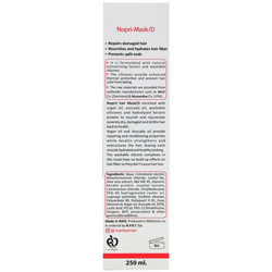 ماسک موی نوپریت حاوی ترکیباتی ارزشمند نظیر روغن آرگان و آووکادو بوده که نرم کننده و ترمیم کننده می باشند و در برطرف کردن شکنندگی و خشکی بیش از حد موها که در اثر آسیب های محیطی و یا استفاده از رنگ و ترکیبات شیمیایی ایجاد می شود، نقش موثری دارند. همچنین به کمک ترکیبات سیلیکونی قابل شستشو و پروتئین کراتین، ضمن ترمیم موهای آسیب دیده، حالت مناسبی به موها داده، موجب شادابی و درخشندگی آن ها می شود. استفاده از این ماسک در داخل حمام شانه خوری موها را تسهیل کرده و از گره خوردن آن ها جلوگیری می کند. سیلیکون های قابل شستشو در این فرآورده، به راحتی از روی موها شسته می شوند. این سیلیکون ها بر خلاف انواع رایج در بازار بر روی ساقه مو باقی نمی مانند و موجب سنگینی ساقه مو و به دنبال آن ریزش نمی شوند.