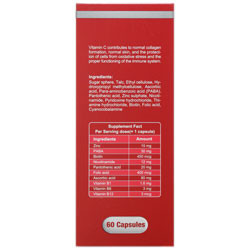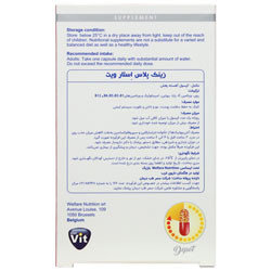 حاوی: روی، پابا، ویتامین C، بیوتین، ویتامین B1، ویتامین B3، ویتامین B5، ویتامین B6، ویتامین B12، اسید فولیک روی یک ماده مغذی مهم است که برای بسیاری از عملکردهای بدن مورد نیاز است و نقش مهمی در تقویت سیستم ایمنی ایفا می نماید. این ماده به حفظ سلامت پوست، مو و ناخن و همچنین تقسیم سلولی طبیعی و محافظت از سلول ها در برابر استرس اکسیداتیو کمک می نماید. به علاوه ویتامین های گروه B، بیوتین، اسید فولیک، آسکوربیک اسید و پارا آمینو بنزوئیک اسید(PABA) نیز با کمک به حفظ سلامت پوست و مو و تقسیم سلولی طبیعی و محافظت از سلول ها در برابر استرس اکسیداتیو در نقش مهمی دارند. این محصول تحت لیسانس شرکت Welfare Nutrition کشور بلژیک، در کارخانه داروسازی مینو تولید شده است.