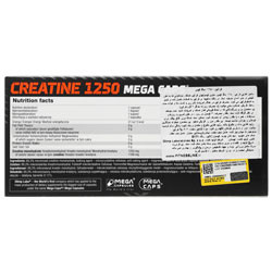 مکمل غذایی کراتین 1250 مگا کپس حاوی کپسولهای کراتین هستند، مولکولی که به طور طبیعی در بدن انسان موجود است. در بافت ماهیچه ای کراتین به فسفات متصل شده و تبدیل به فسفوکراتین می شود. مصرف کراتین در هنگام تمرینات تکراری با شدت بالا و کوتاه مدت باعث افزایش عملکرد بدنی می شود.( با مصرف روزانه حداقل سه گرم کراتین) این محصول برای بزرگسالانی که از لحاظ فیزیکی فعال هستند و تمرینات شدید انجام می دهند در نظر گرفته شده است.