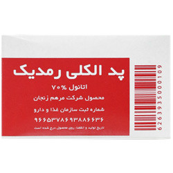 پدهای الکلی در حال حاضر بهترین راه حل برای پاکسازی و ضدعفونی پوست قبل از تزریق است. پد الکلی رمدیک تولید شده از با کیفیت ترین منسوجات نبافته و اشباع شده از الکل ایزوپروپیلن 70 درجه است. پد الکلی رمدیک بسته بندی شده در ساشه های ضد رطوبت است که به راحتی باز شده و قابل استفاده می گردد. پد آغشته به الکل و تا شده است. پدهای الکلی رمدیک فاقد لاتکس و استریل هستند. این محصول در شرکت توان افزای شهریار به سفارش شرکت توسعه تجارت و تولید امند تولید شده است.