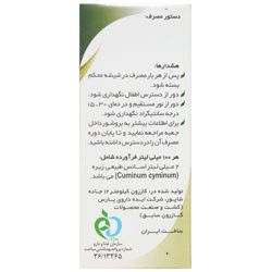 در دوران بارداری مصرف نشود. *همانند سایر داروها ، این فرآورده را دور از دسترس اطفال و در دمای اتاق و دور از تابش مستقیم نور خورشید نگهداری شود. *افرادی که دارای معده حساس هستند بهتر است قطره زیره را بعد از غذا مصرف کنند.