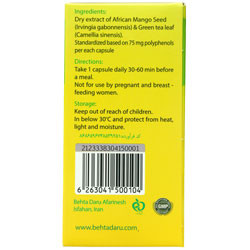 - حاوی عصاره خشک دانه انبه آفریقایی و عصاره خشک چای سبز