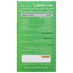 - کپسول کات رفلاکس، حاوی کلسیم کربنات و منیزیم هیدروکسید به عنوان خنثی کننده های اسید معده