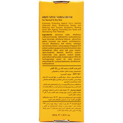 چرا ضدآفتاب؟ امواج ساطع شده از نور خورشید یکی از مهم ترین عوامل آسیب رسان به پوست می باشد، به طوری که در موارد حاد این آسیب حتی تا مرز تبدیل شدن به سرطان پوست پیش می رود. اثرات مخرب پوستی ناشی از UV شامل آثار زود هنگام مانند آفتاب سوختگی، قرمزی و تیره شدن پوست و آثار دیر هنگام مثل سرطان پوست و پیری زودرس پوست ( چین و چروک ، لک و کک و ... ) می باشد. SPF بالا کافیست؟ فاکتور حفاظت در برابر نور خورشید SPF ) Sun Protection Factor ) فقط میزان محافظت در مقابل اشعه UVB را نشان می دهد. در صورتی که اشعه ماورای بنفش نور خورشید که پس از عبور از اتمسفر به سطح زمین می رسد، متشکل از 95% UV-A و 5% UV-B می باشد. هر دو نوع اشعه موجب آسیب رسانی به پوست می شوند. اشعه UVA باعث چین و چروک، لک های قهوه ای و در نتیجه پیری پوست شده و اشعه UVB که دارای انرژی بیشتری است، سبب آفتاب سوختگی، التهاب پوستی و در نهایت سرطان زایی می گردد. PA+++ چیست؟ علامت PA+ ) Protection Grade of UV-A ) میزان محافظت محصول در مقابل اشعه UV-A را نشان می دهد. محصولات ضد آفتاب و ضد لک لافارر کرم ضد آفتاب و ضد لک بی رنگ لافارر دارای ویژگی محافظت گسترده ( broad spectrum ( UVA و UVB می باشد. این محصول با SPF 50 به میزان 98% مقاومت پوست را در برابر اشعه ماورای بنفش افزایش داده و دارای نشان PA+++ می باشد تا علاوه بر محافظت پوست در مقابل اشعه UV باعث پیشگیری و کمک به درمان لک های ناشی از نور خورشید ( Hyperpigmentation ) گردد. محصول گیاهی کرم ضد آفتاب و ضد لک بی رنگ لافارر مخصوص پوست های خشک و معمولی با بهره گیری از عصاره های گیاهی و مواد موثر شناخته شده ی رطوبت رسان موجب تامین رطوبت و رفع خشکی و التهاب پوست می گردد. این محصول ضد حساسیت و ضد قرمزی می باشد و ظاهری یکنواخت و زیبا به پوست می بخشد.