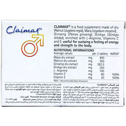 - قرص کلایمکس، مفید در تقویت قوای جسمی مردان و افزایش سطح انرژی بدنی و کاهش خستگی و بیحالی