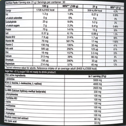 - حاوی بیش از 10 گرم آمینو اسید خالص با ترکیبی از 4 گرم بی سی ای ای ، ال گلوتامین و گلوتامین پپتید
