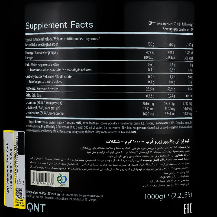 ترکیبات به ازاي يک پيمانه (30 گرم)