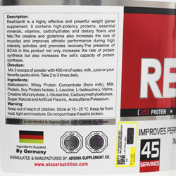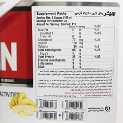 رئال گین یک مکمل غذایی موثر و قدرتمند برای افزایش وزن است و این محصول دارای مقادیر بالایی از آمینو اسیدهای ضروری و شاخه دار بوده که به افزایش حجم و ساخت توده عضلانی، تامین گلیکوژن عضلانی تحلیل رفته در حین ورزش و تحریک بدن به سخت پروتئین های عضلانی کمک می کند.