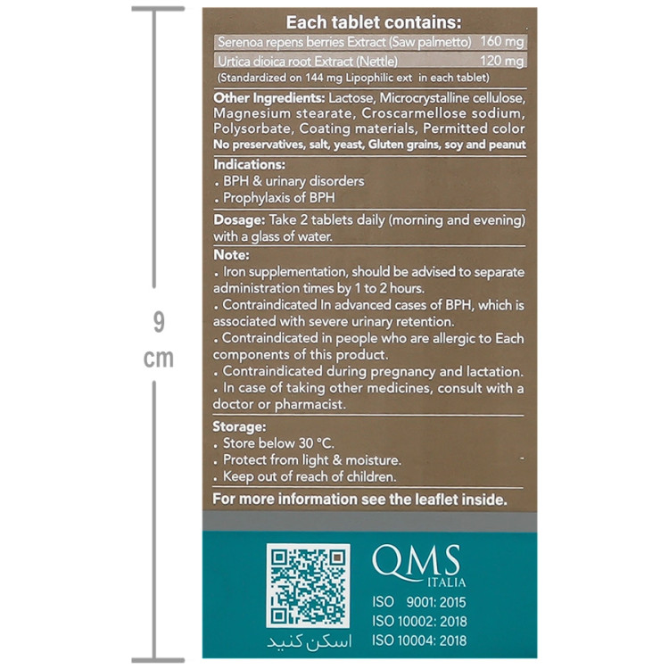 - حاوی عصاره میوهی گیاه نخل اره ای Saw Palmetto و ریشهی گزنه