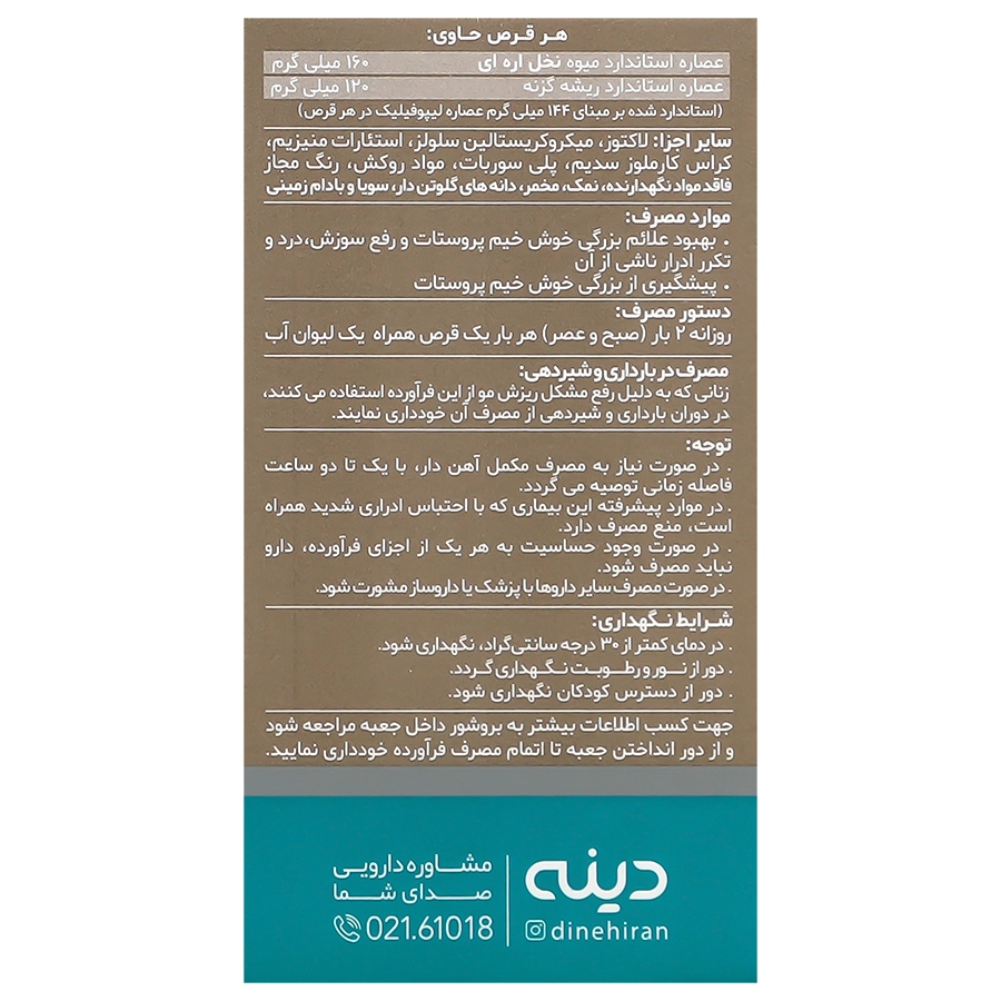 - هر جعبه از قرص پروستادین دینه، مناسب برای استفاده 25 روز