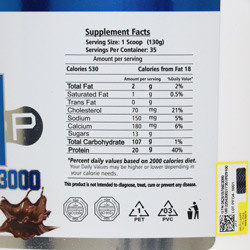 ترکیبات: مالتودکسترین، وی پروتئین، میلک پروتئین، پروتئین ایزوله، سویا، شکر، کربوکسی متیل سلولز، آسه سولفام پتاسیم، طعم دهنده و رنگ مجاز خوراکی.