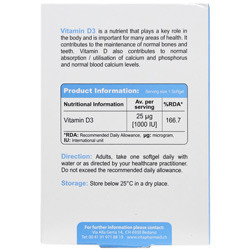 - کپسول نرم ژلاتینی هر کپسول شامل 25µg ویتامین D3 می باشد.