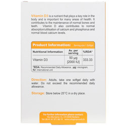 - هر سافت ژل حاوی 50 میکروگرم معادل 2000 واحد ویتامین د3