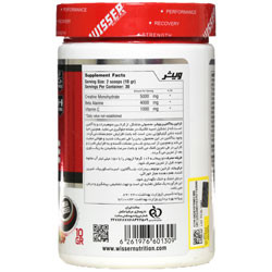 ترکیبات: کراتین مونوهیدرات، بتا آلانین، اسید اسکوربیک، شیرین کننده، طعم دهنده و رنگ مجاز خوراکی