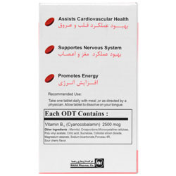 قرص باز شونده در دهان با عطر و طعم آلبالو (ODT) حاوی 2500 میکروگرم ب12 در هر قرص ویتامین محلول در آب