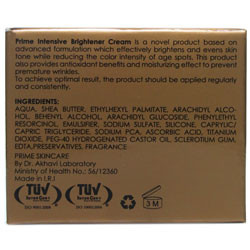 کرم روشن کننده پریم فراورده ای نوین و مطلوب جهت رفع و کاهش لک های رنگی پوست می باشد و از ایجاد لک های جدید جلوگیری می کند. استفاده از ماده مؤثره فنیل اتیل رزورسینول در فرمولاسیون این محصول به گونه ای چشمگیر سبب رفع لک های تیره پوست می گردد. استفاده مستمر از این کرم شفافیت و روشن شدن پوست را به دنبال خواهد داشت. از مهمترین ترکیبات فعال موجود در این فراورده می توان به موارد ذیل اشاره نمود: